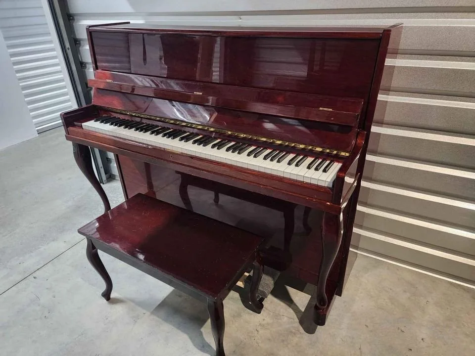 This piano is in good condition. French Provincial style. High-gloss finish. Equipped with mute rail. Excellent fit for home, classroom, or studio use. Price includes local delivery & first tuning. Delivery outside local area is negotiable.